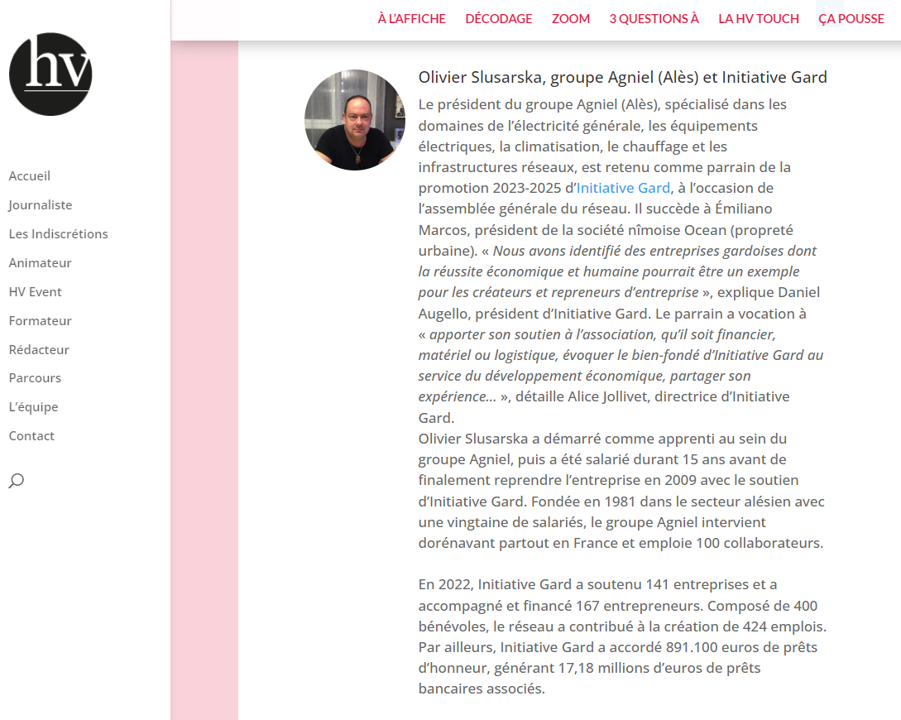 Olivier SLUSARSKA, groupe Agniel (Alès) et Initiative Gard