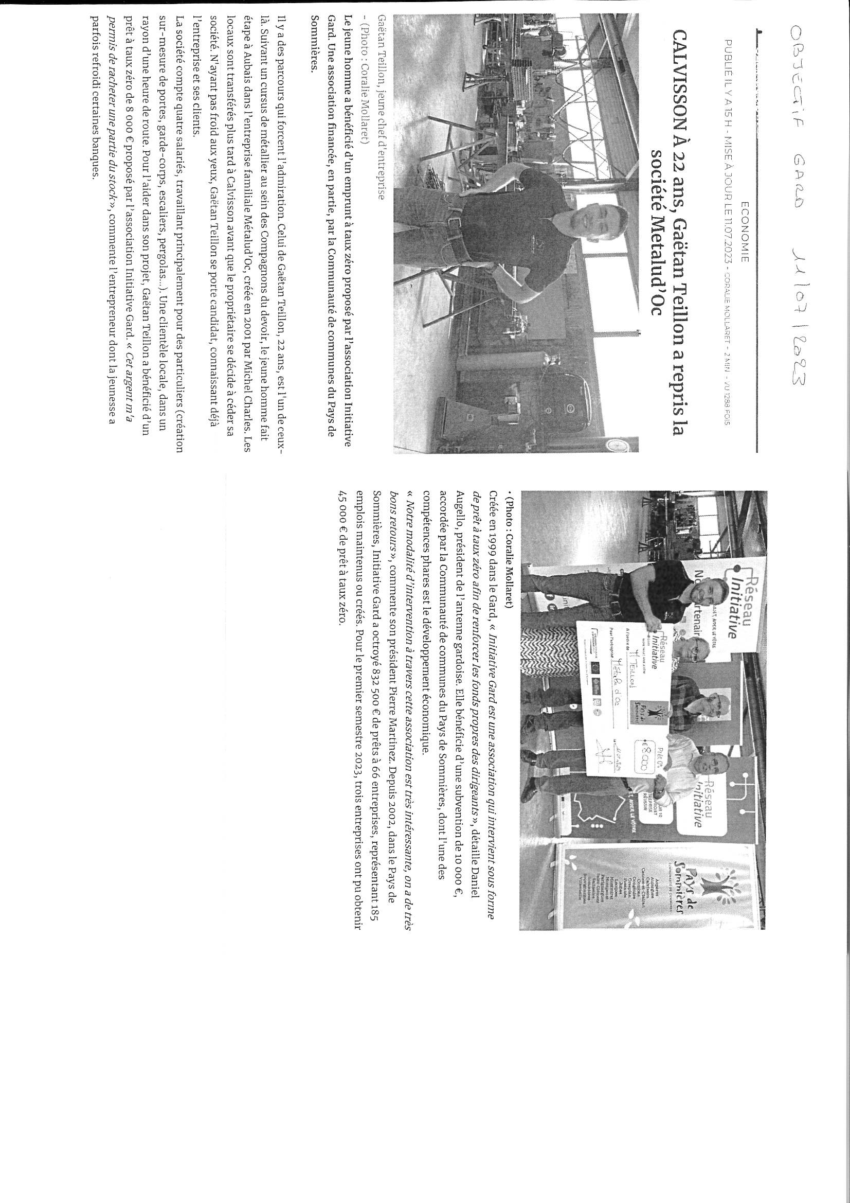 - Objectif Gard - Remise chèque prêt d'Honneur Gaëtan Teillon Métalu d'Oc