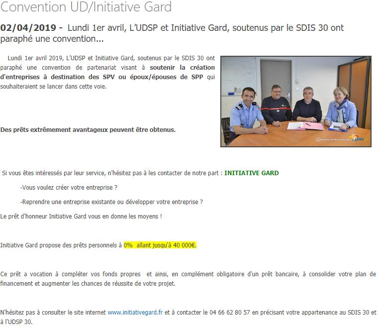 Lundi 1er avril, L’UDSP et Initiative Gard, soutenus par le SDIS 30 ont paraphé une convention...