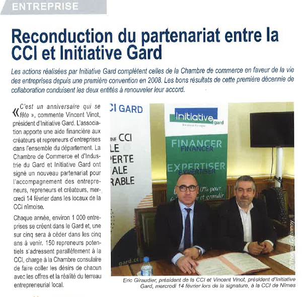 Midi Libre - Signature de la convention de partenariat entre la CCI Gard et Initiative Gard