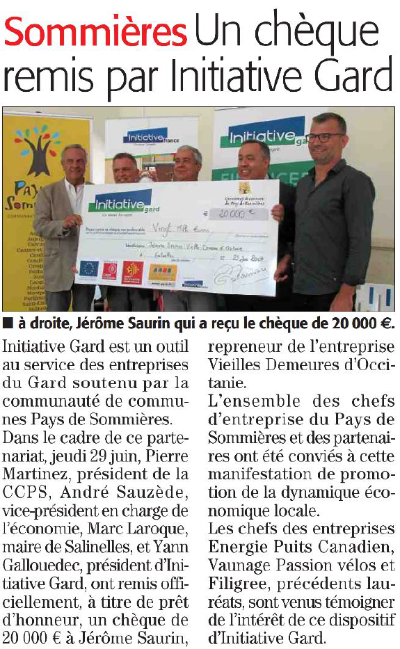 Sommières : Un chèque remis par Initiative Gard.