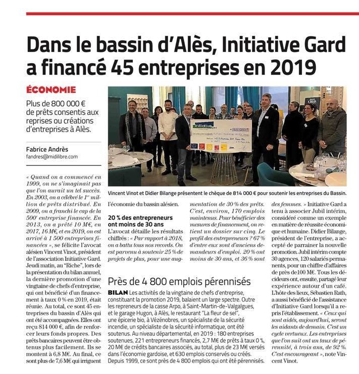 - Midi Libre - 25 10 2022 - Avec 2,5 M€ de prêts, Initiative Gard a aidé 161 entreprises en 2021