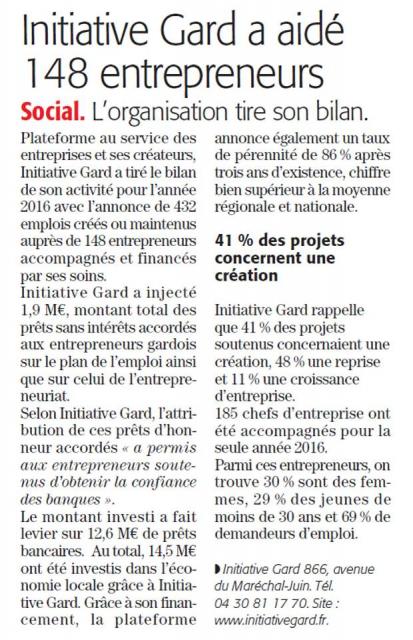 - Midi Libre - 25 10 2022 - Avec 2,5 M€ de prêts, Initiative Gard a aidé 161 entreprises en 2021