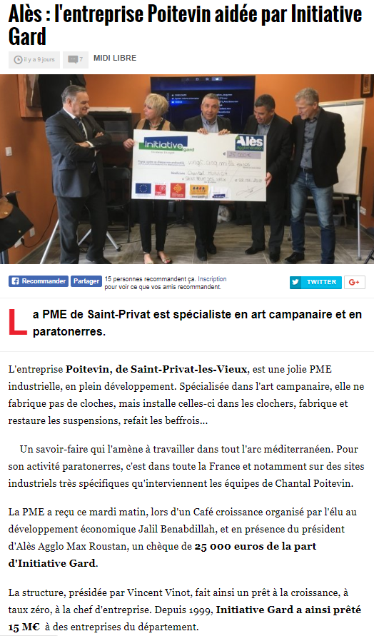 Alès : l'entreprise Poitevin aidée par Initiative Gard.