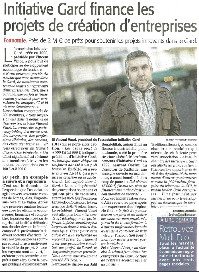 - Midi Libre - 25 10 2022 - Avec 2,5 M€ de prêts, Initiative Gard a aidé 161 entreprises en 2021