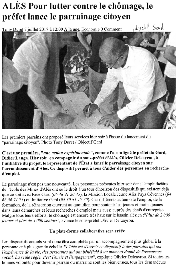 Alès - Pour lutter contre le chômage, le préfet lance le parrainage citoyen.