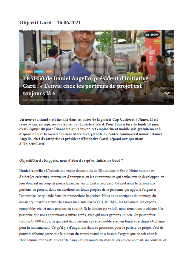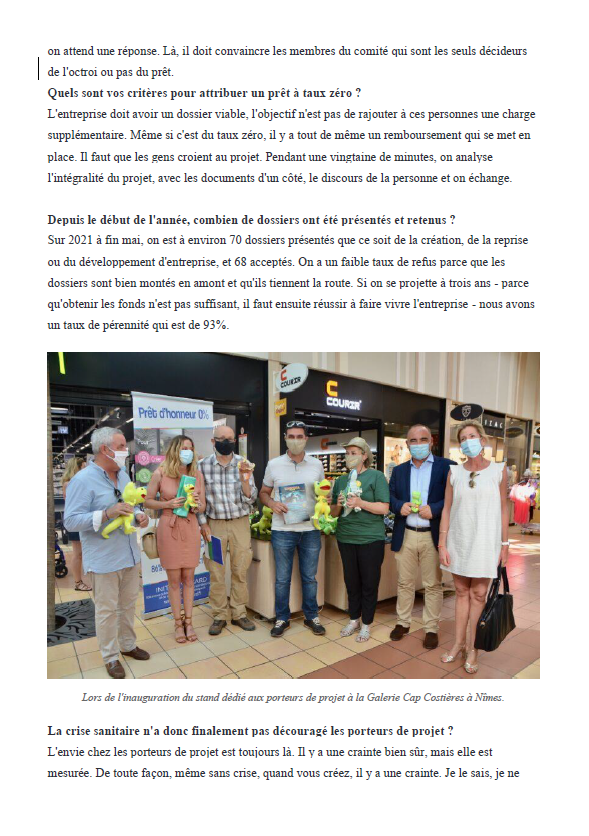 - Midi Libre - 25 10 2022 - Avec 2,5 M€ de prêts, Initiative Gard a aidé 161 entreprises en 2021